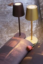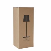 "Luci-lla", lampe sans fil élégante de haute qualité qui, grâce à cette liberté, peut être placée n'importe où. La protection IP54 permet l'utilisation de la lampe aussi bien à l'intérieur qu'à l'extérieur. Parfait comme lampe d'intérieur et d'extérieur pour éclairer un dîner romantique dans le jardin, sur la terrasse, sur un bateau, etc. Il a une hauteur visant à ne pas obstruer la vue entre les convives. Lampe tactile (s'allume avec une touche sur la partie supérieure) en aluminium peint, rechargeable par USB, dimmable (cela signifie qu'il est possible de régler l'intensité de la lumière en touchant la partie supérieure de la lampe avec un doigt). Avec lumière LED (faible consommation d'énergie). Autonomie de la batterie : min 10 - max 30 heures, selon l'intensité de la lumière avec laquelle elle est utilisée. Temps de charge : 5/6 heures. Existe aussi en blanc, noir, chocolat, crème, or. Fil de charge inclus dans chaque boîte. Emballage unique. Pour les quantités supérieures à 18 pièces, il y a une réduction.