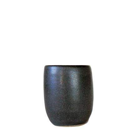 Tasse sans poignee noire base ronde en gres d7 h7.5 cm