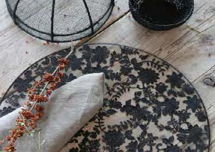 Sous-plat en pvc noir/transparent avec fleurs d38cm
