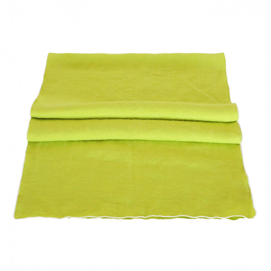 Chemin de table 100% lin lime bordure blanc 50 x 140 cm