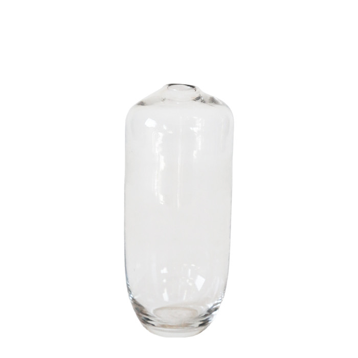 Vaso in vetro monofiore dalle linee moderne, alto 18 cm e con un diametro di 8 cm. Il prezzo è scontato del 50% in quanto sono presenti alcuni segni di calcare.