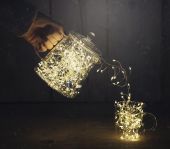 Cascata con 300 led, lunga 3 metri, a corrente elettrica, ad alta luminosità, resistente e flessibile. Grazie alla sua versatilità può essere appesa o appoggiata su un piano. Può essere posizionata sulla tavola in tutta la sua lunghezza. La cascata luminosa può essere usata sia in allestimenti INTERNI che ESTERNI (GP IP 44). Perfetta per matrimoni, eventi e decorazioni natalizie. Appesa o adagiata su un piano, decora casa, ristoranti, bar, hotel, vetrine, balconi, terrazze e giardini. La sua luce crea subito atmosfera. Confezionata singola in una graziosa scatola in cartone, è già pronta per essere un regalo.