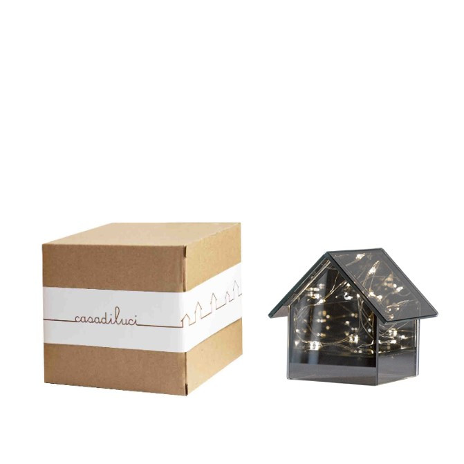 Casetta in vetro a specchio con all'interno luci led colore bianco. Perfetta come idea regalo natalizia. Utile anche durante l'anno come grazioso punto luce. Prodotto elegante e di design, grazie alla sua linea semplice e pulita. E' possibile creare un piccolo villaggio disponendo più casette insieme. Imballo singolo in scatola di cartone naturale con fascetta grafica. Batterie non incluse.