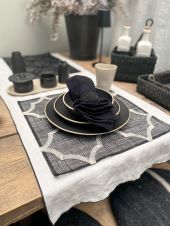 Sottopiatto quadro in abaca nero decoro bianco 36 x 36 cm